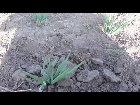 Прогревают, чтобы исключить развитие различных заболеваний в дальнейшем. Размещают одним слоем на плоскости в сухом помещении при температуре 40°C на 8 часов.- Подготавливают грядку – делают борозды глубиной 4-5 см, на расстоянии 15-20 см. Высаживают луковички на расстоянии 30 см друг от друга.