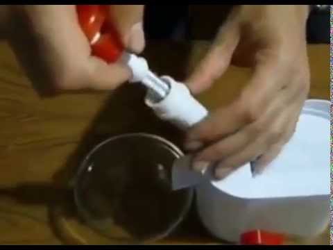 Приспособление для обработки ягод можно сделать и собственными руками из обычного медицинского шприца на 10 мл и более. Ножом срезается носик шприца, затем на его месте по центру просверливается отверстие, удаляются шероховатости, и вплотную к краю в стенке шприца аккуратно прорезается «окошечко» для ягоды по ее размеру. Поршень обрабатывается щипчиками так, чтобы получился неострый плотный зубец длиной от 25 мм и зацепы чуть выше его основания.