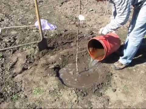 - установив саженец, производится его засыпание, для исключения завоздушеностей и дальнейшего проседания грунта, саженец необходимо постоянно покачивать;