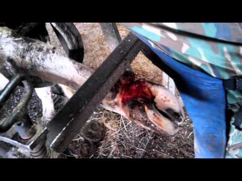 Если кожа между копыт сильно повреждена, и имеются сочащиеся кровью трещины, то обязательно нужно позаботиться о перевязке.
