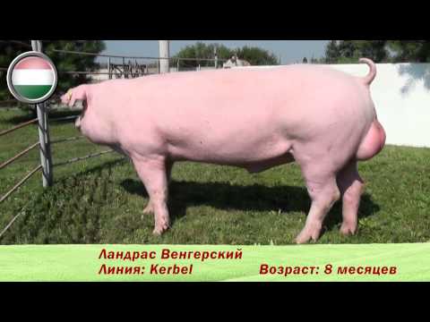 Ландрас. Эта беконная порода свиней была селекционирована в Дании путем смешивания Крупной Белой с местной Датской. Вес взрослого животного мужского пола составляет более 3 центнер, а свиноматки весят не более 2,6. За один опорос самка способна дать одиннадцать поросят.При оптимальных условиях содержания, молодое поколение способно прибавлять в сутки по 700 грамм и уже в возрасте полгода весить более 1 ц. Внешне Ландрас схожи с представителями Белой породы. У нее такое же вытянутое тело и широкий окорок. Длинные, свисающие на глаза уши. Кожа тоненькая, сала практически нет.